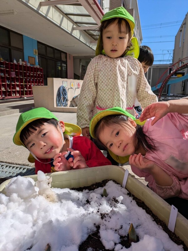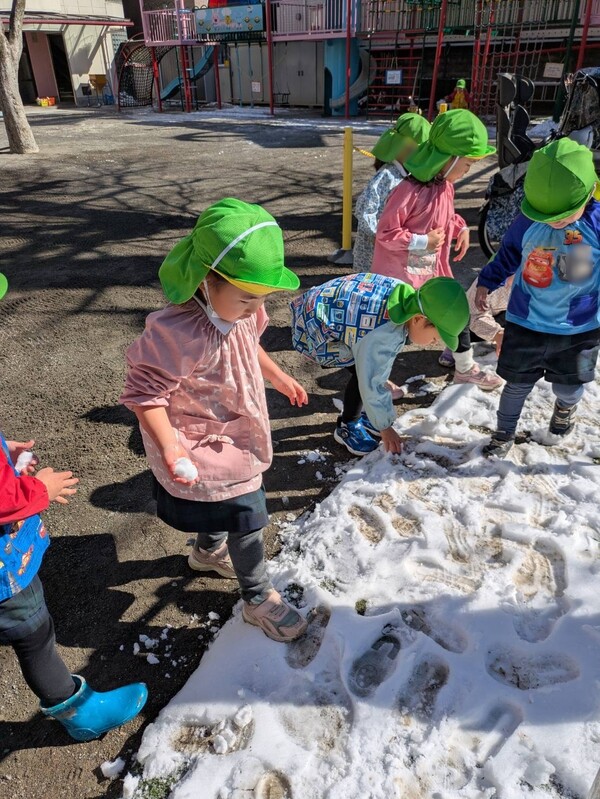 園庭開放 (21) 日々の様子 (425) お知らせ (0) 2026/02/10 園庭に雪が積もりました⛄ 2/9(月)園庭に雪が積もりました⛄登園した子どもたちは、雪や氷柱を見つけて嬉しそうにしていました。雪の園庭に出かけて、雪をぎゅっと丸めて雪だるまを作ったり、手に取って雪の冷たさを感じたり、足跡をつけて歩いたり、それぞれが雪の感触を楽しんでいました。年少さんは大切に育てているチューリップにかかった雪を、手でそっとどかしてあげていました。「さむくないかな?」と言いながらチューリップを思いやる優しい気持ちが感じられました🌷 1 2 3 4 5 6 7 8 9 10 11 12 13 14 15 16 17 18 19 20 21 22 23 24 25 26 27 28 29 30 31 32 33 34 35 36 37 38 39 40 41 42 43 44 45