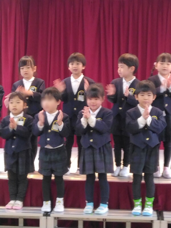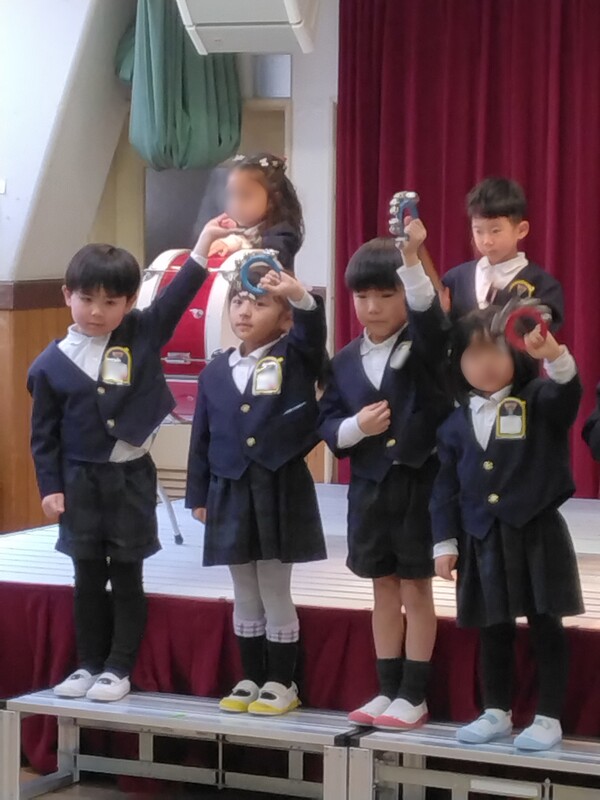 年長クラスになると、音楽講師による音楽保育があり、メロディオンの演奏を行います。午後にはお家の方を招待し、1年間教わったことを発表しました。